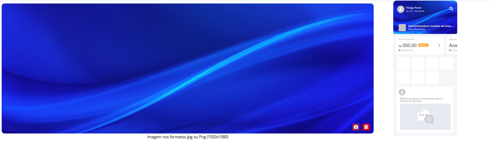 A imagem escolhida é fixada no cabeçalho de forma que todos os moradores visualizem a mesma identidade visual ao acessar o aplicativo, promovendo reconhecimento de marca e profissionalismo.