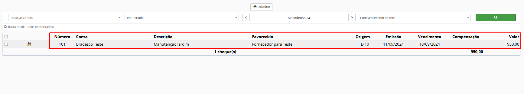 - No módulo Financeiro, acesse Despesas > Cheques > Cheques Emitidos;