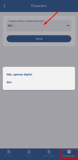 - Na aba Financeiro, você também pode informar se deseja receber o boleto impresso ou não;