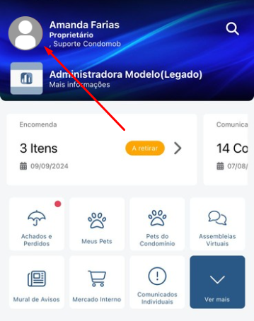 - Clique no ícone do seu perfil para visualizar o menu do aplicativo;