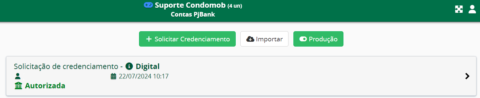 - Após a confirmar a Conta Digital, a mesma estará com o status Autorizada, conforme imagem a seguir: