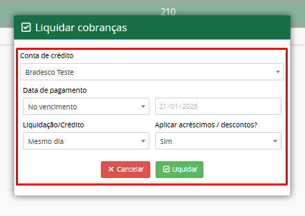 Solução: Para liquidar manualmente cobranças, realize os passos a seguir: