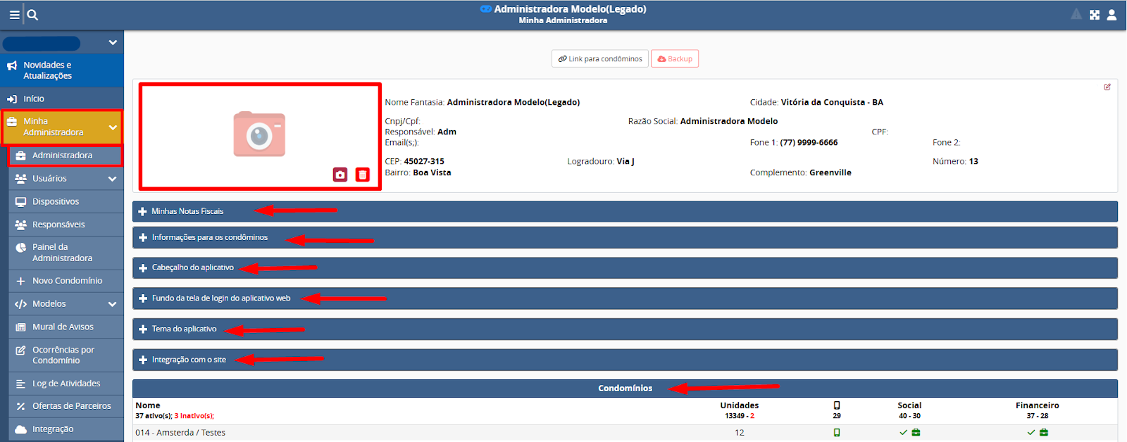 A funcionalidade Minha Administradora oferece às administradoras de condomínios as seguintes possibilidades: