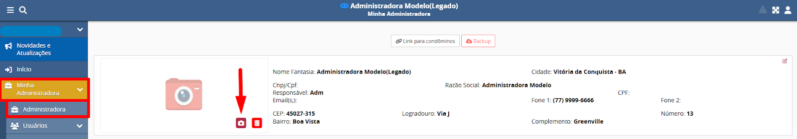 Como alterar a imagem ou logo da administradora no cadastro do Módulo Social