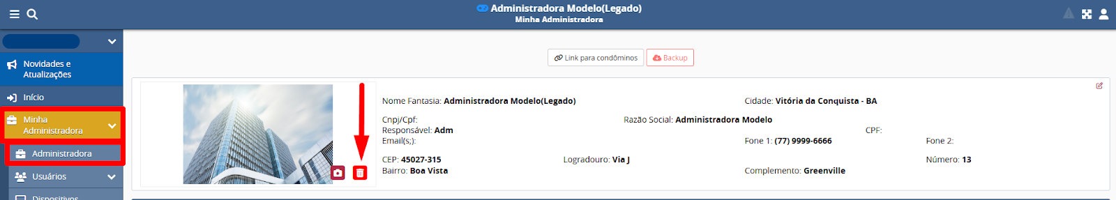 Como excluir a imagem ou logo da administradora no cadastro do Módulo Social