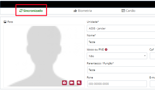Se o usuário já se encontrar sincronizado, mas por algum motivo é necessário sincronizá-lo novamente, pode ser feito clicando no botão Sincronizado, encontrado no próprio cadastro do Módulo Social, ou enviar um comando de sincronização pelo Módulo Portaria. Para realizar este procedimento, deverá: