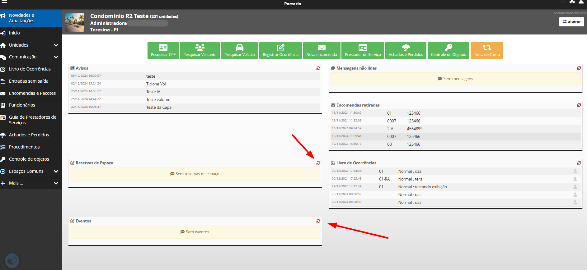 A Tela de Início da Interface da Portaria no Condomob é uma central de acesso que organiza as principais funcionalidades e informações utilizadas pela portaria. Com botões e áreas de acesso rápido, essa tela facilita a execução de tarefas cotidianas, como consultas, registros e visualizações.
