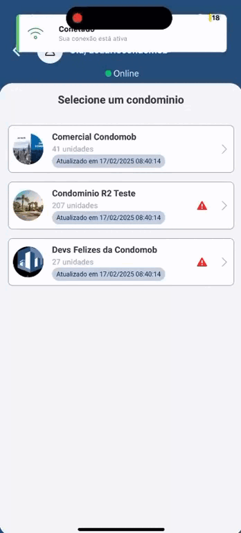 - Caso o usuário esteja sem rede, é possível gravar os dados localmente, mas a sincronização só ocorrerá quando houver conexão com a internet.