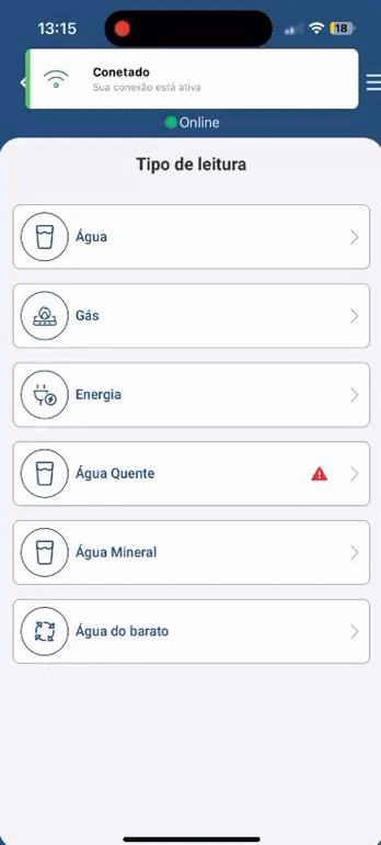 - Escolha o condomínio e o tipo de leitura (água, gás, energia etc.).