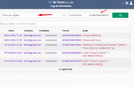 - A função de histórico de atividades é acessível apenas para usuários com permissões administrativas, como Síndicos e Administradores.