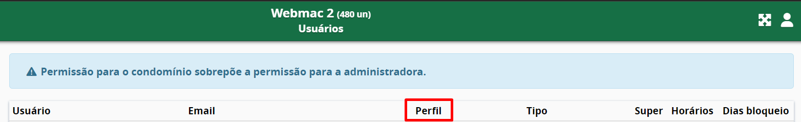 Não é possível com um mesmo e-mail ter um perfil na administradora e um outro perfil em um condomínio. Caso isso ocorra, o perfil que estiver cadastrado na administradora será alterado para o mesmo que estiver no condomínio.