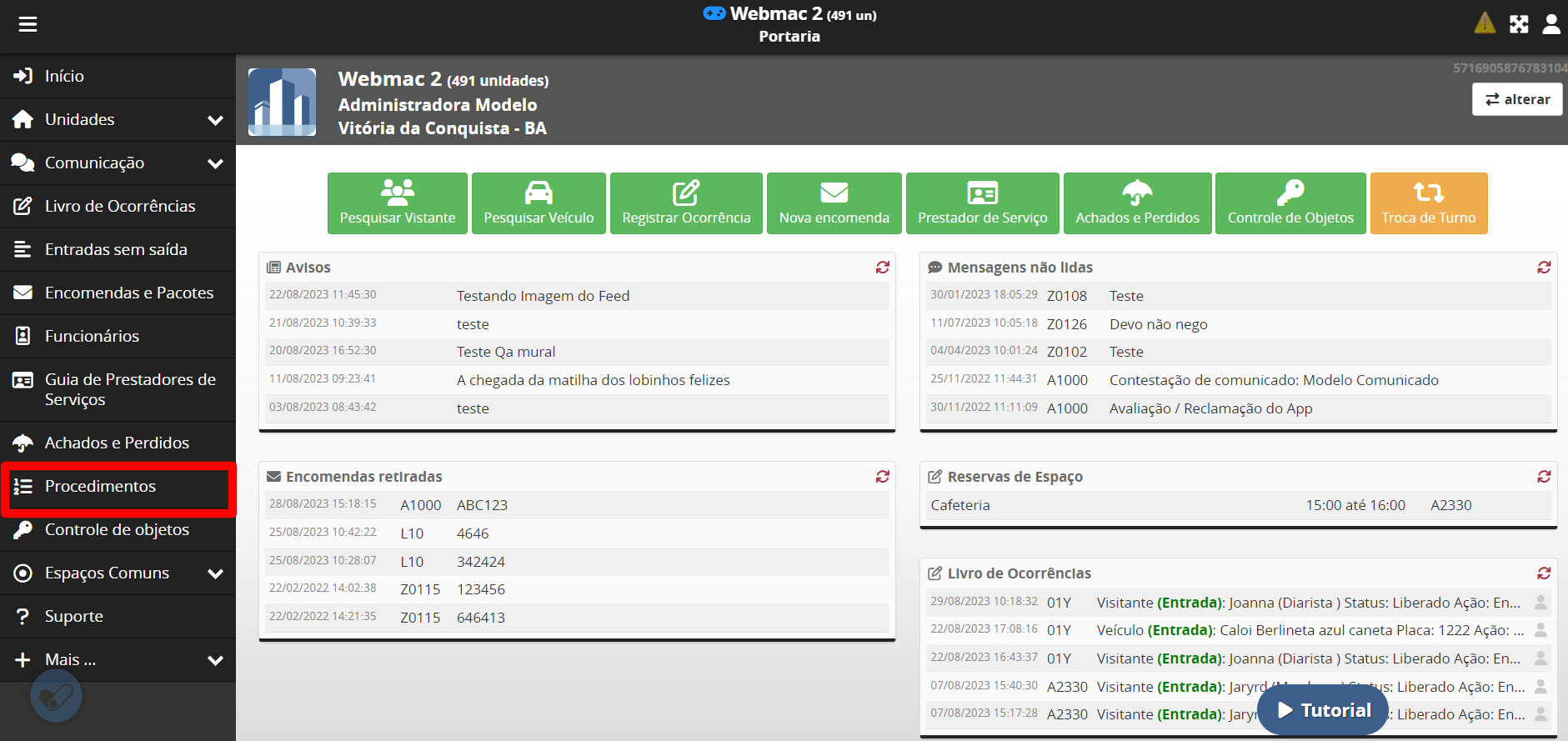 Para acessar esta função na interface da portaria Condomob, no menu lateral esquerdo, clique em "Procedimentos":