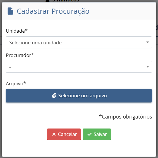 Para finalizar o cadastro da unidade com procuração, clique no botão "Salvar".