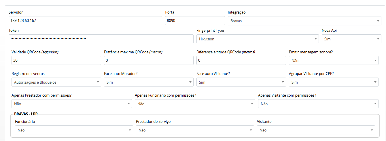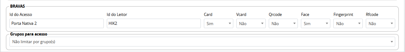 Na controladora Bravas: Ajustes → Configuração do Módulo de Acesso