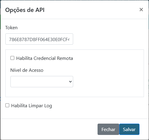 Para acessar na controladora Bravas: Ajustes → Opções de API