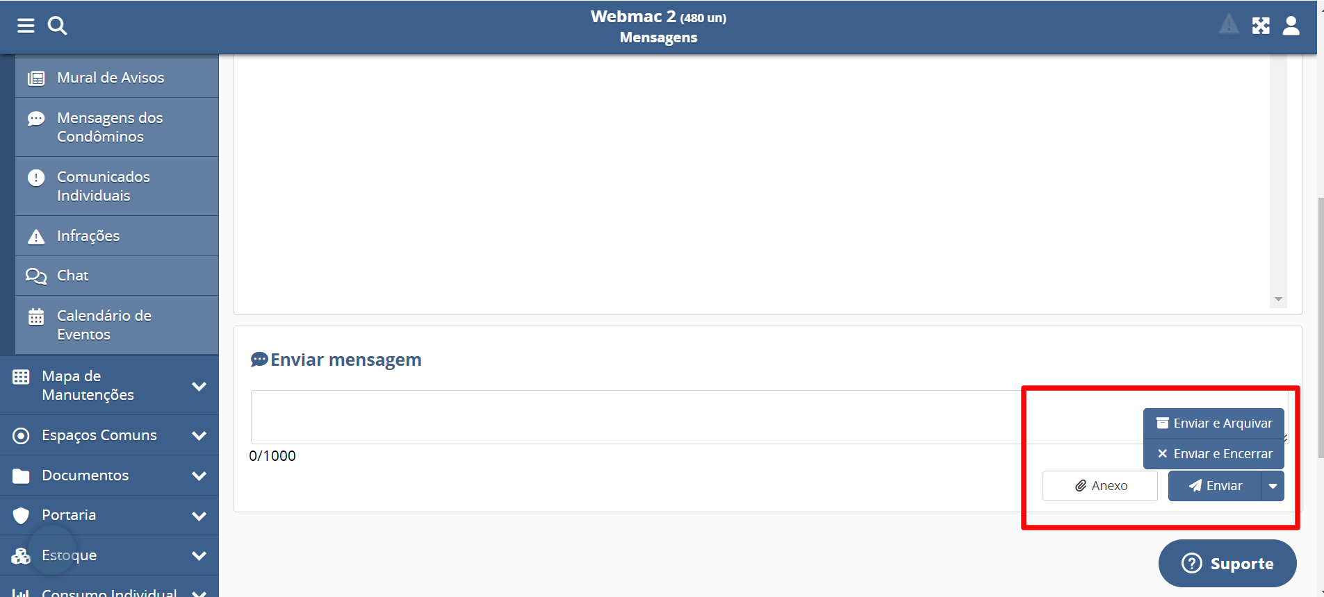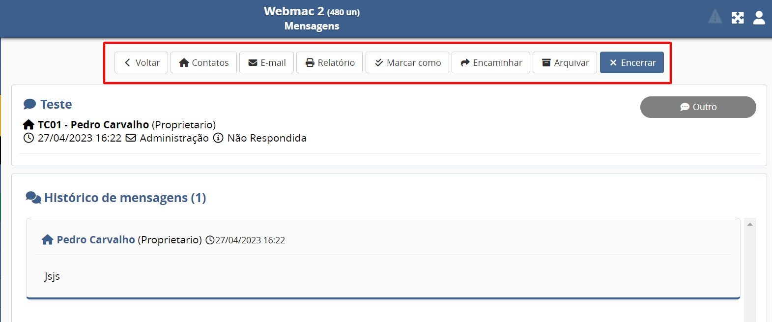 - Encaminhar: Poderá reencaminhar a mensagem para a Administração, Síndico, Portaria, Zelador;