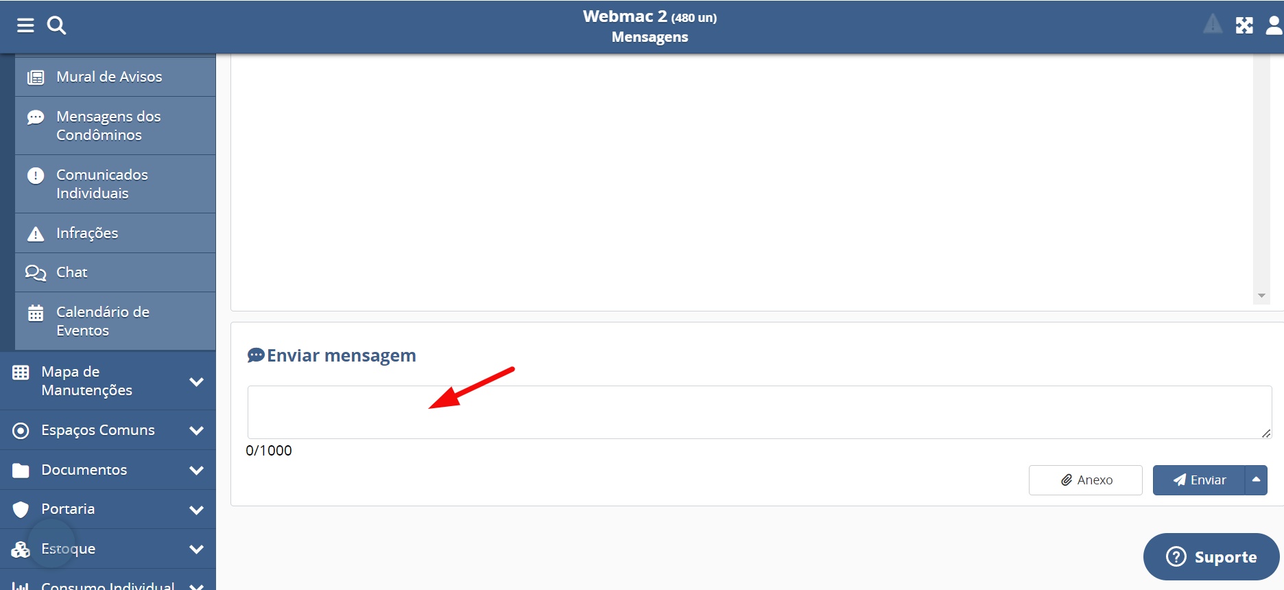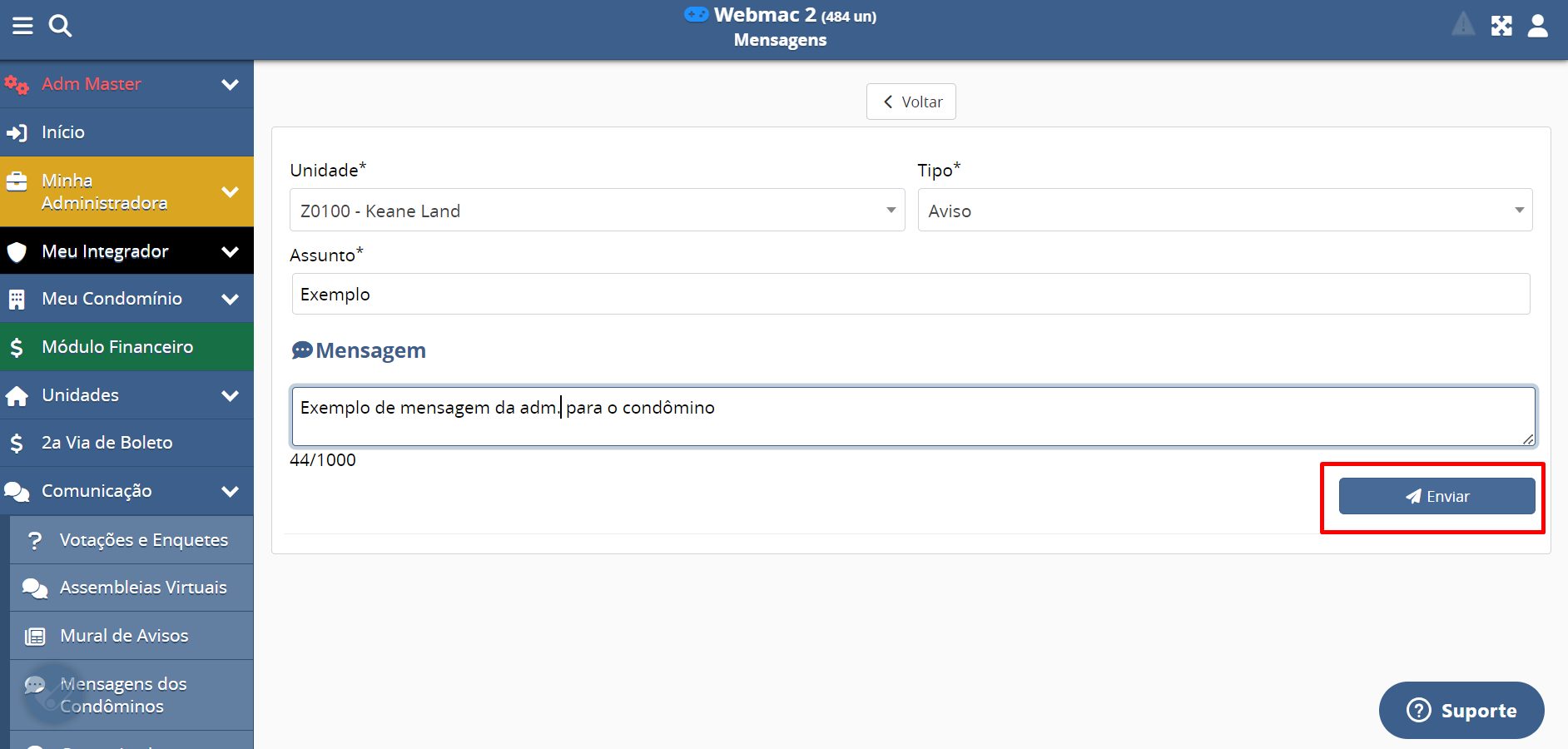 - Unidade (selecione a unidade para a qual deseja enviar a mensagem - campo obrigatório);
