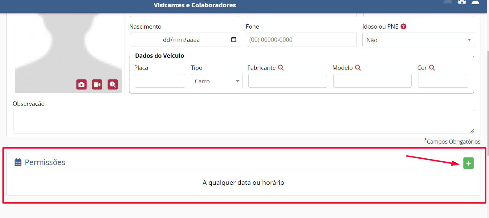 - Dados do Veículo: Informações cadastrais do veículo do visitante, caso o mesmo esteja acessando o condomínio com o veículo.
