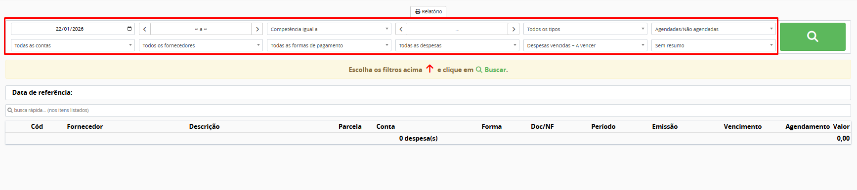 Como visualizar e gerar relatórios de despesas em aberto por período