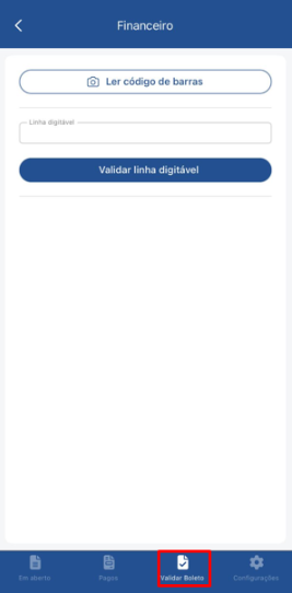 2. Se quiser conferir a autenticidade de um boleto impresso, use a aba Validar Boleto e aponte a câmera para o código de barras.