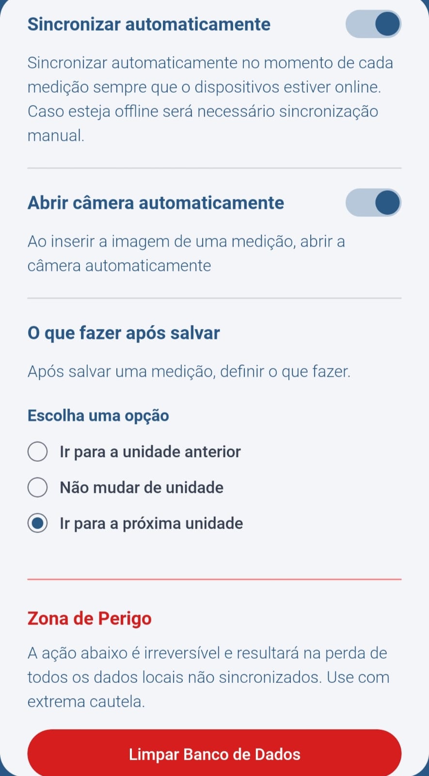 Após o descarte, as leituras poderão ser preenchidas novamente conforme necessário.