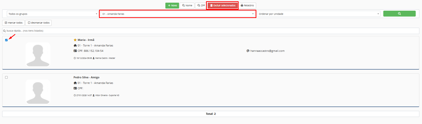 Exclusão manual de moradores anteriores: Se o novo titular ou a administração desejar remover os moradores anteriores, o administrador deve acessar o Módulo Social e seguir os passos: