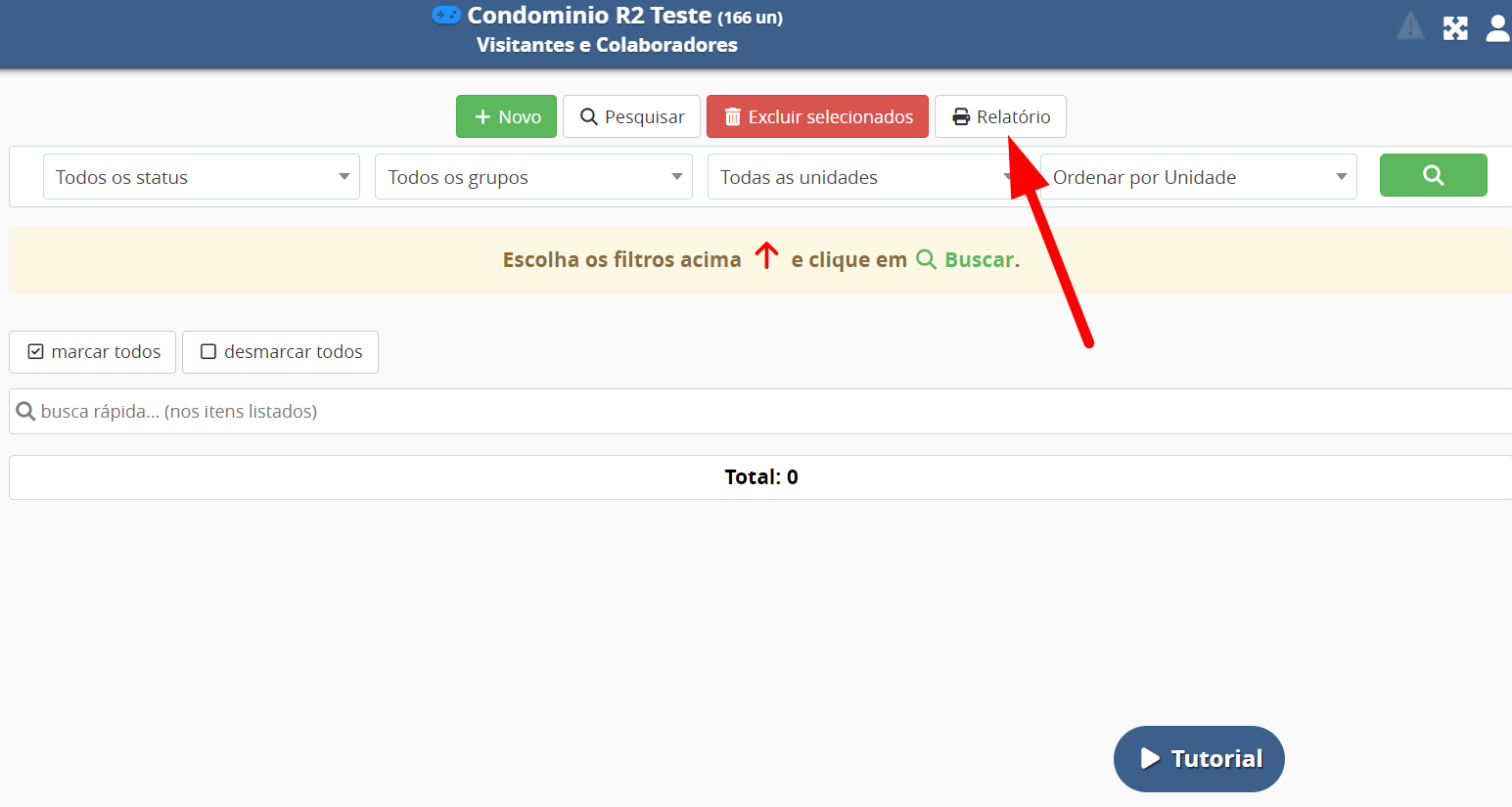 P: Como conferir se a ação em 'Visitantes e Colaboradores' foi validada em sistema? R: Consulte os logs de auditoria de usuário ou extraia um relatório rápido do respectivo módulo.