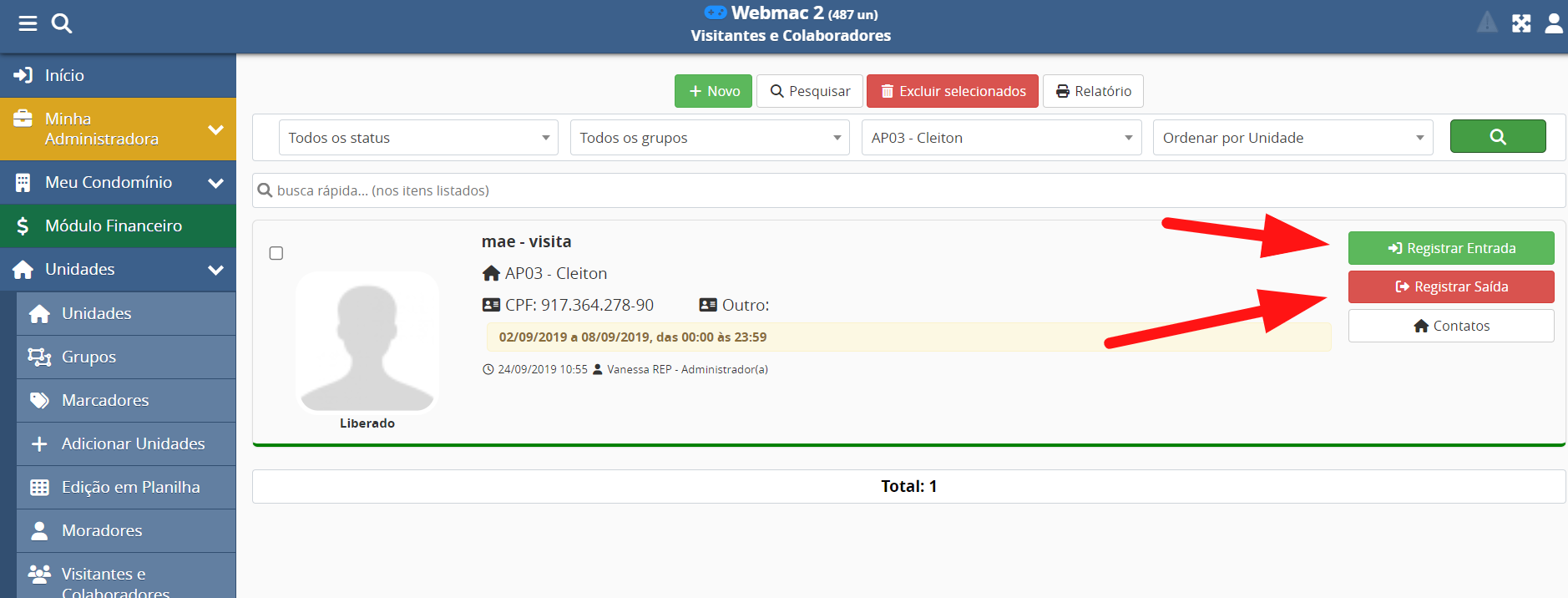 - Acesse o menu Portaria > Visitantes e Colaboradores;