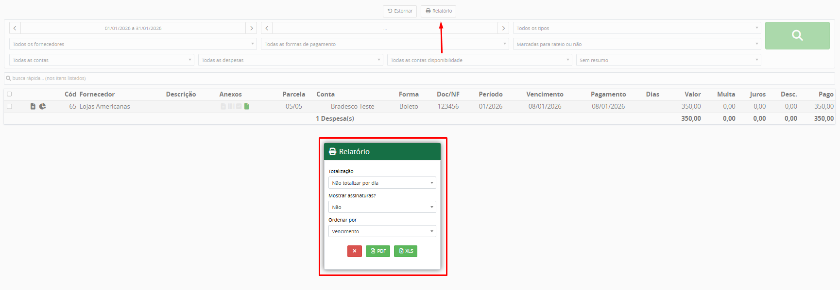 5.3 Ordenar Por: selecione entre data de vencimento ou pagamento;