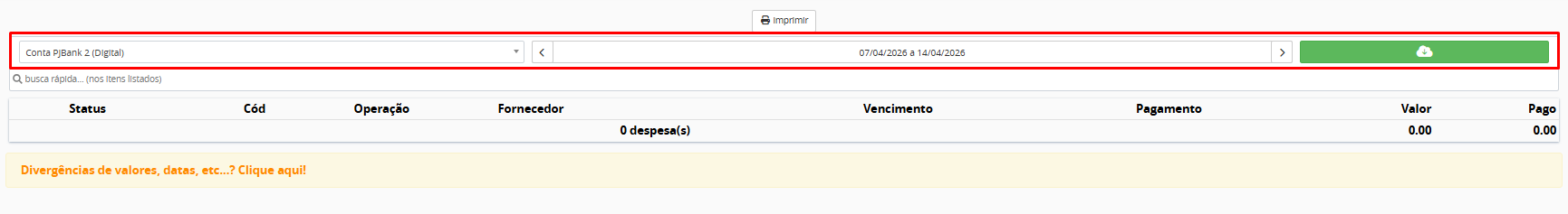 Observações: Essa funcionalidade facilita o monitoramento das liquidações de despesas vinculadas à conta digital PJBank, permitindo a geração de relatórios para registro e análise.
