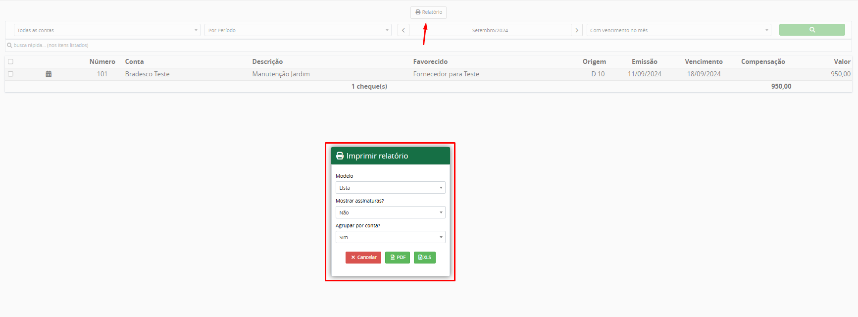 - No módulo Financeiro, acesse Despesas > Cheques > Cheques Emitidos;