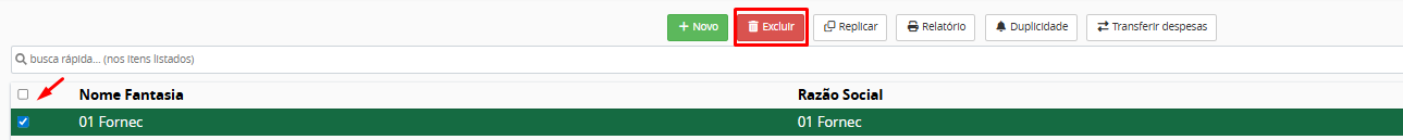 - Funcionalidades disponíveis: Clique em + Novo para cadastrar um novo fornecedor; utilize Excluir para remover fornecedores; use Replicar para replicar fornecedores para outros condomínios; clique em Relatório para gerar relatórios em PDF ou XLS; ative o aviso de duplicidade marcando Sim; utilize Transferir Despesas para transferir despesas de um fornecedor para outro;