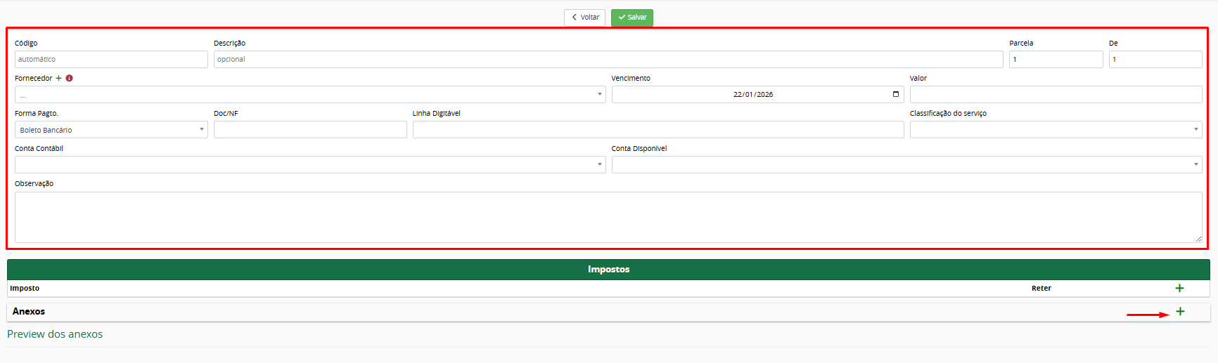 3.3 Fornecedor: selecione um fornecedor ou cadastre um novo clicando no sinal de +;