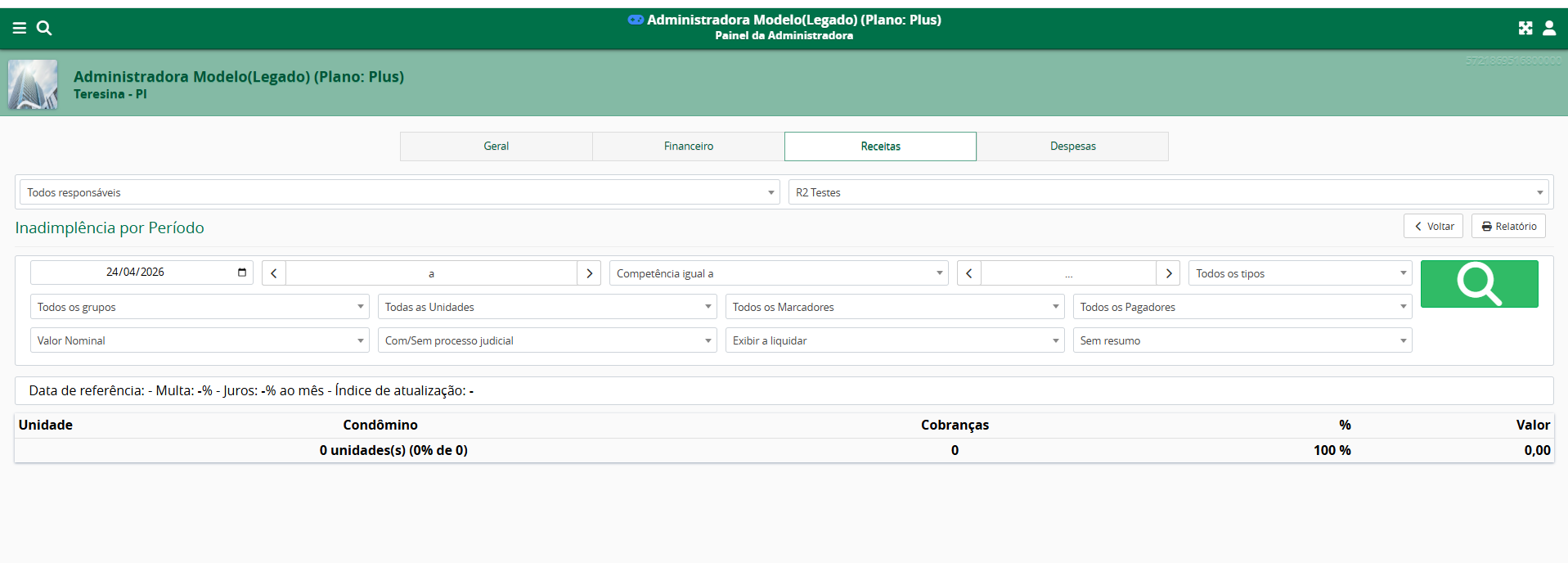 Painel da Administradora > Painel - Módulo Financeiro