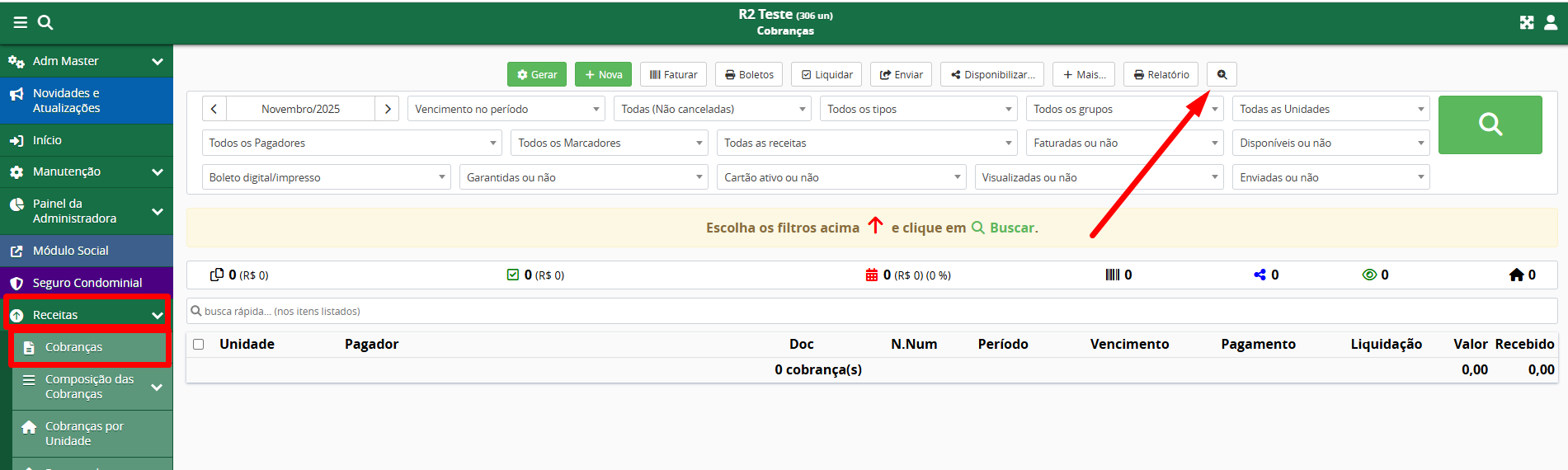 Acesse o módulo Financeiro e entre na tela de Cobranças.
